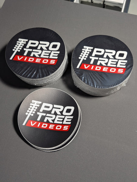Round, Flat Black, Pro Tree Videos LOGO slap sticker.
